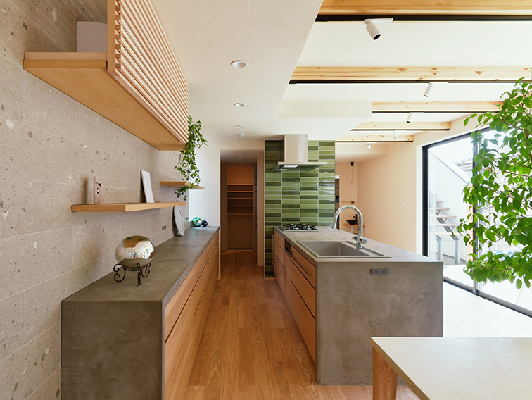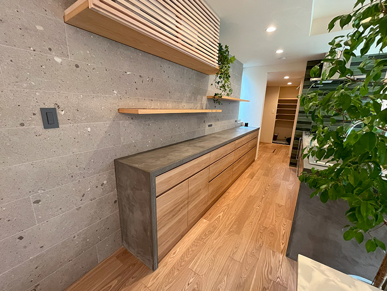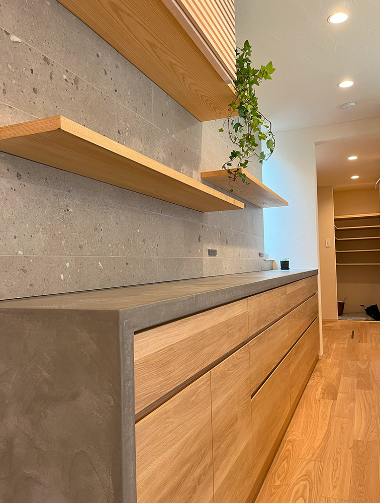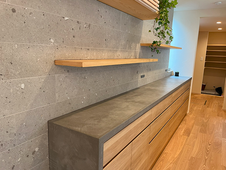 モールテックスの天板は通常より分厚く、重厚感のあるキッチンに仕上がりました。