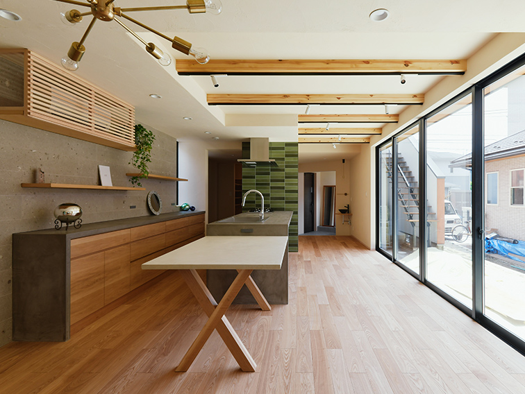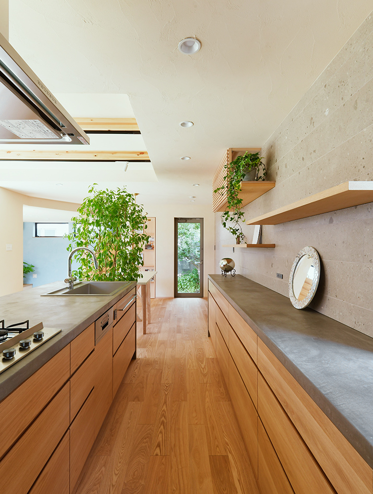 横並びだけでなく対面で一緒に料理ができるキッチン。