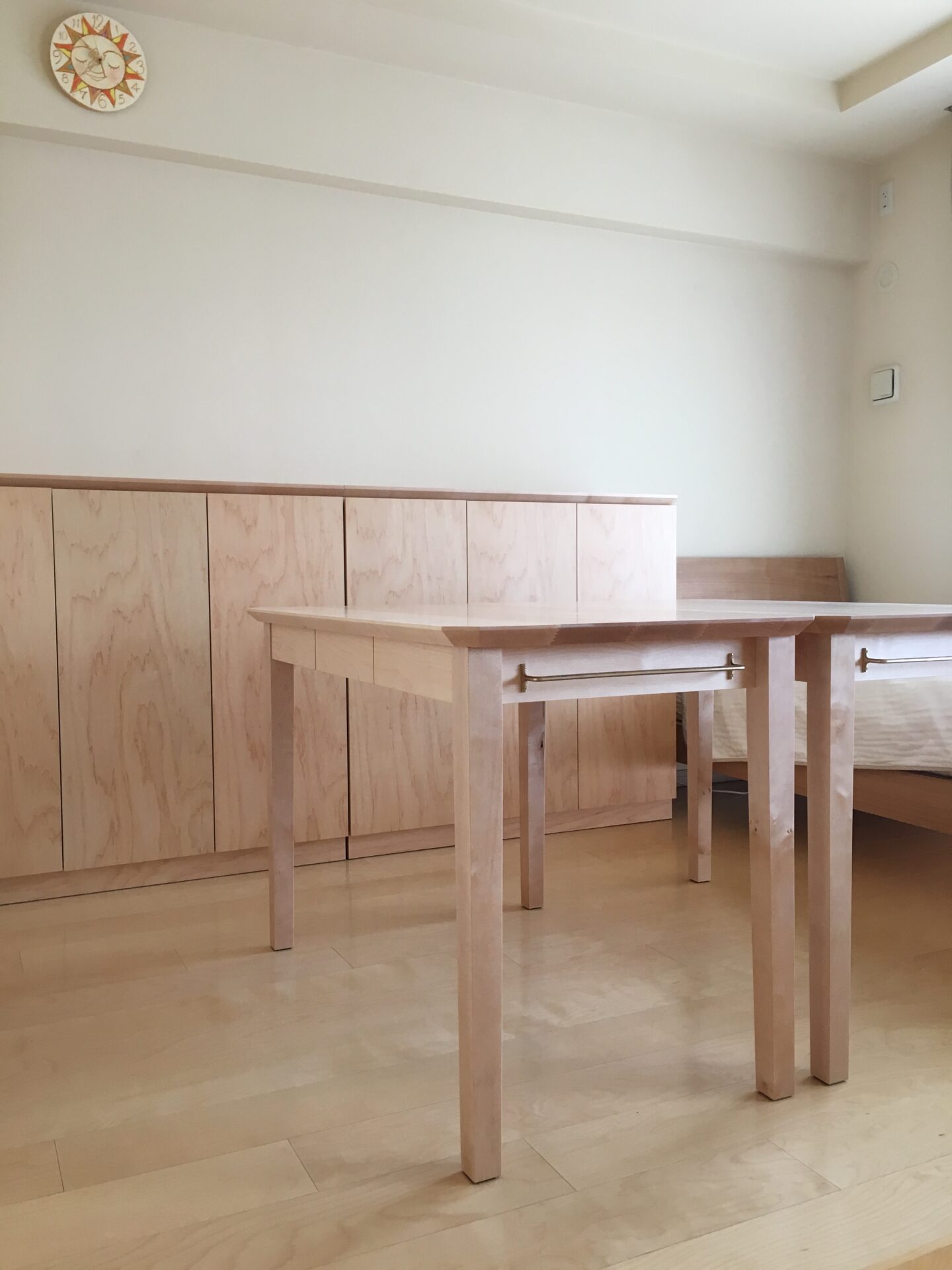 お部屋の雰囲気に合わせて、メープルの無垢材で作ったオーダーデスク。